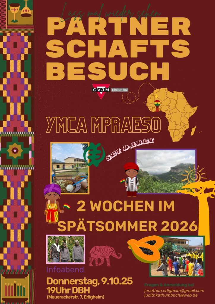 Herzliche Einladung am 09.10.2025 ins DBH. Wir wollen mit euch gemeinsam überlegen, wann und wie wir zusammen nach Ghana reisen. Wir freuen uns über viele Interessierte!