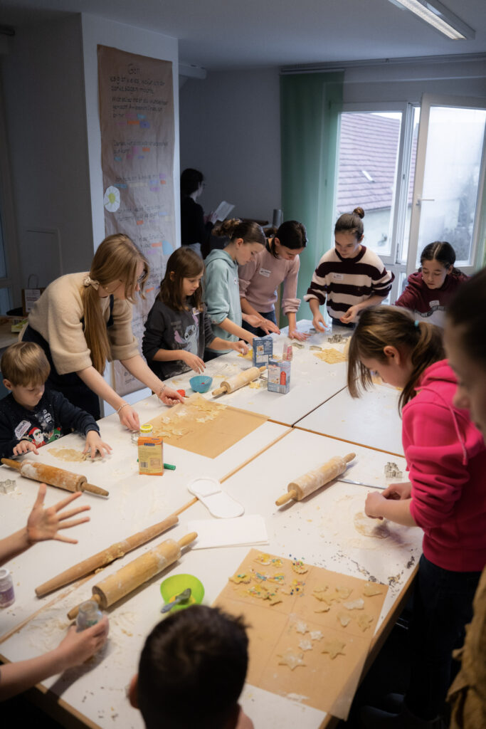 Anschließend konnte jedes Kind das tun, worauf es Lust hatte, z.B. Plätzchen backen – Last Minute Weihnachtsgeschenke basteln – Gesellschaftsspiele – Aktivspiele wie Ballbouncer etc. Die 70 Kinder haben sich im Haus gut verteilt. Zum Schluss kamen nochmal alle im Plenum zusammen – mit Schlusslied und Segen wurden die Kinder verabschiedet. Draußen erwarteten die Eltern freudig ihre glücklichen Kinder. Vielen Dank an unsere 25 ehrenamtlichen Mitarbeitenden. Danke für eure Zeit und Liebe für die Kinder. Ohne euch wäre das alles nicht möglich – ihr wart klasse! Wir freuen uns schon auf 2026.
