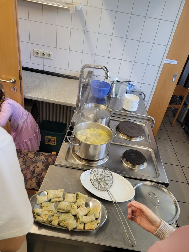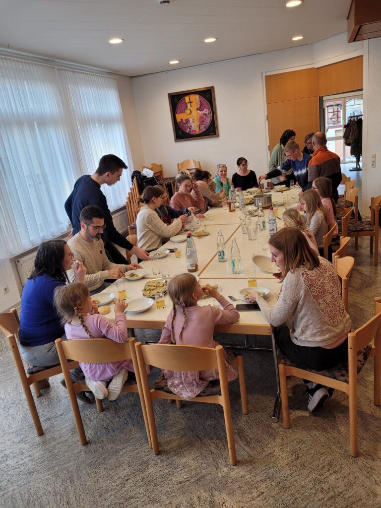Der erste Maultaschenkurs des CVJM war spitze! Mit 21 Menschen von ganz klein bis im „besten Alter“ waren wir gut vertreten. Gestartet haben wir mit einer kleinen Reise durch die Geschichte der Maultasche, dann eine praktische Einweisung in die Herstellung der „schwäbischen Genusstaschen“. Anschließend wurde in 4 Gruppen gemeinsam Maultaschen produziert und zum krönenden Abschluss unser Ergebnis beim Abendessen genossen. Vielen Dank an das Vorbereitungsteam für einen tollen ersten Ferientag!