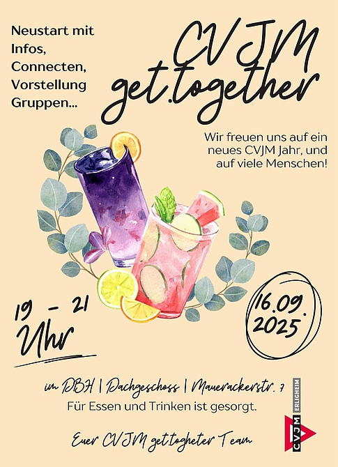 Herzliche Einladung an alle CVJM Mitglieder und alle Interessierten zum CVJM get.together Neustart ins nächste Schuljahr!