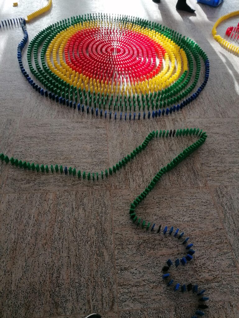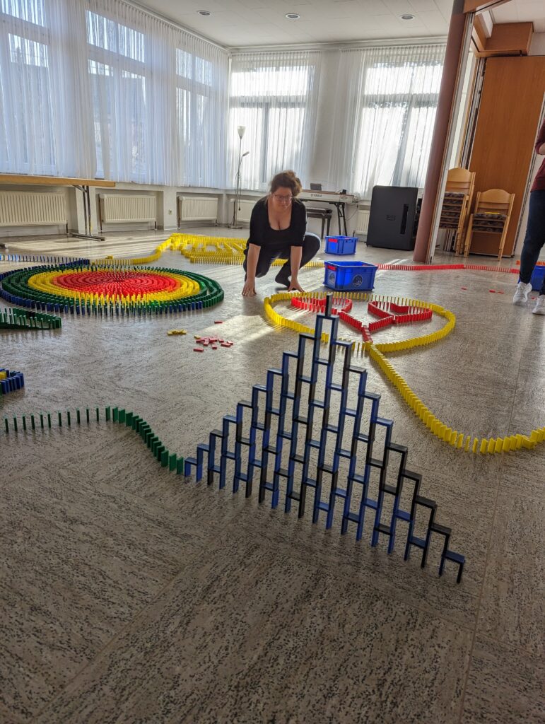 Am Samstag 22.3.2025 fand im DBH der 4. Dominoday statt. Mit 25 fleißigen Helfer:innen haben wir 2 Stockwerke und die Treppe bebaut. Nach einem leckeren Snack zwischendurch konnten wir dann um 15.30 Uhr unser Werk anstoßen. Vielen Dank an alle fleißigen Bauer und schön, dass viele zum Anstoß kamen. Wir freuen uns schon auf das nächste Jahr!