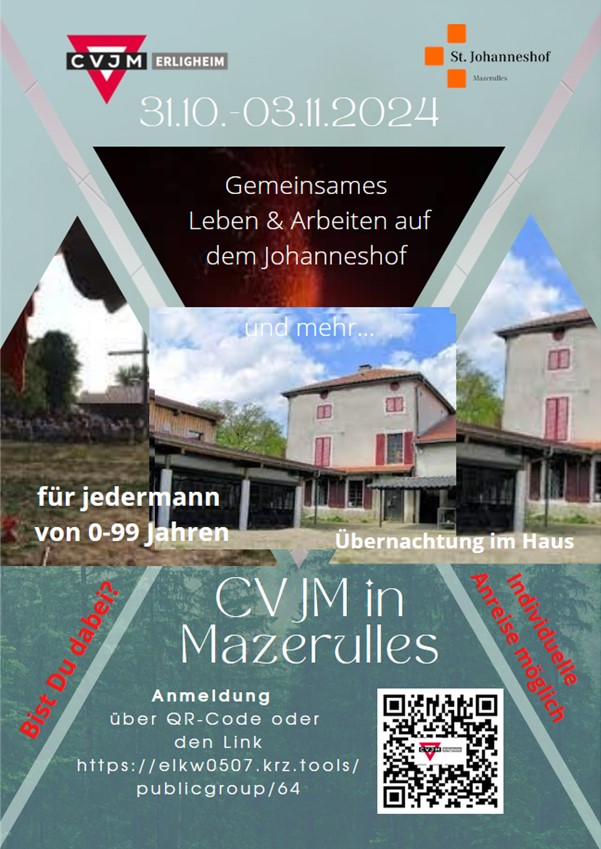 Mit 30 Mitgliedern und jeder Menge Jugendwerks-Unterstützung ging es in den Herbstferien vom 31.10. bis 3.11.2024 nach Mazerulles zum Arbeitseinsatz. Jeder war wichtig, denn es gab viel zu tun auf dem St. Johanneshof. Das Dach auf der alten Scheune wurde erneuert, im Hof wurde gepflastert, im Wald wurden Bäume gefällt und zersägt und für gemütliche Lagerfeuer gespalten. Durch das leckere Essen aus der Küche konnten wir genug Kraft tanken, um durchzupowern. Am Abend gab es noch Zeit für Gemeinschaft, Singen und Spielen und um sich besser kennenzulernen. Wir blicken dankbar zurück auf intensive Tage. Als CVJM wollen wir praktisch unterwegs sein und genau das haben wir in Mazerulles getan. Danke an alle Schafferinnen und Schaffer, die sich mit ihren Gaben eingebracht haben.