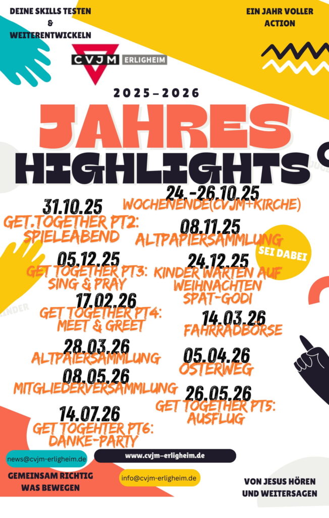Damit wir als CVJM Gemeinschaft immer weiter zusammenwachsen, haben wir verschiedene get.together Events geplant.